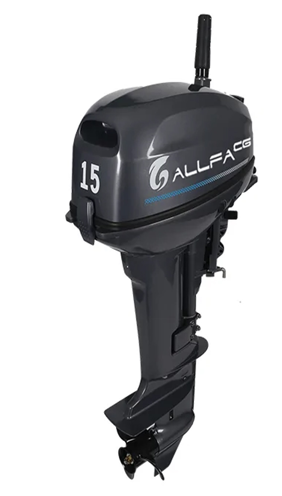 ALLFA CG Т15 - подвесной бензиновый 2х-тактный лодочный двигатель. Это честный лодочный мотор на 15 лошадиных сил, неудушенный, нефорсированный. Удачный выбор для быстрого разгона на судах среднего размера. Такой вид двигателя не требует специальных мер при эксплуатации. Это значит, что с ним ваша лодка ПВХ будет радовать вас не один сезон без дополнительных усилий.